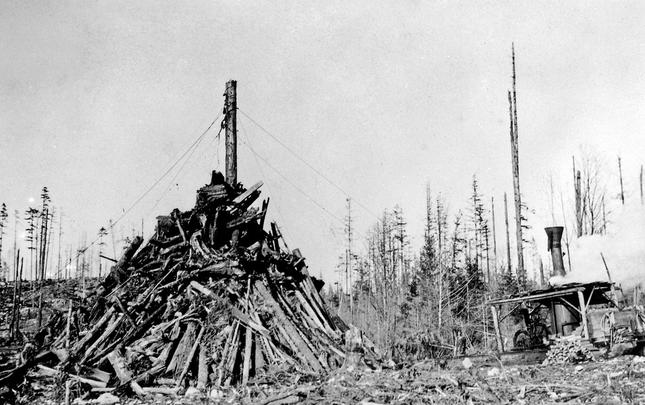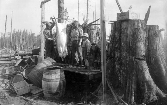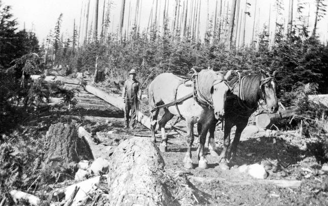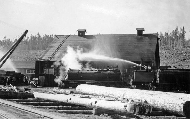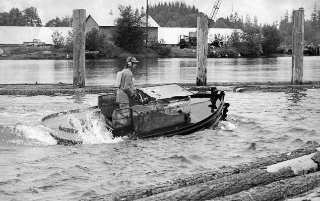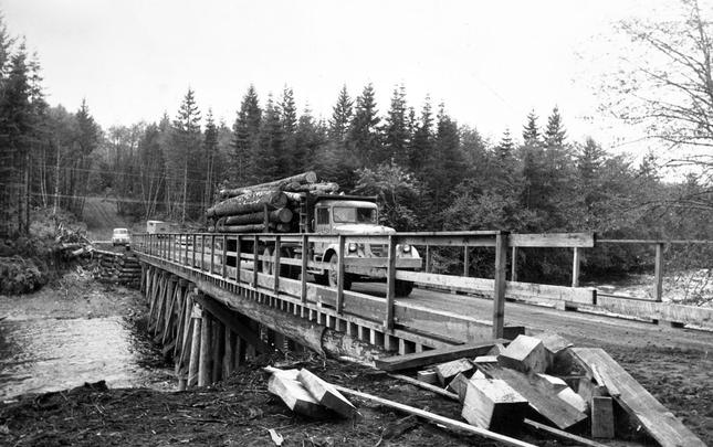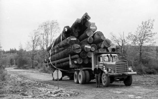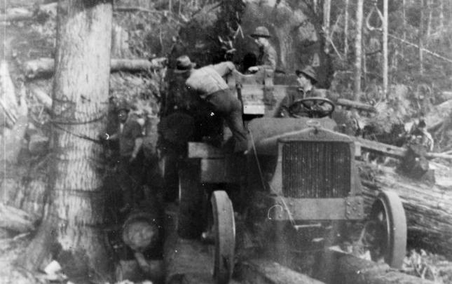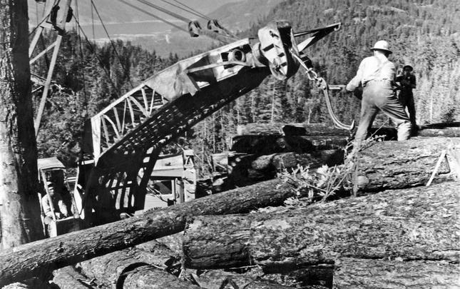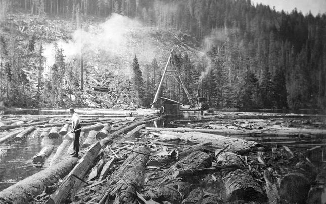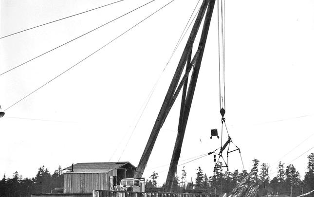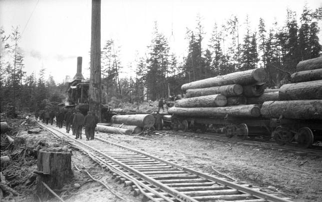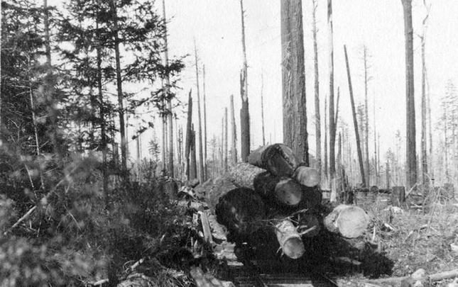 A variety of companies have logged in the Menzie's Bay area (just north of the city of Campbell River) over the years, including Lamb Lumber Co., Bloedel Stewart & Welch, MacMillan Bloedel, and Campbell River Timber Co.