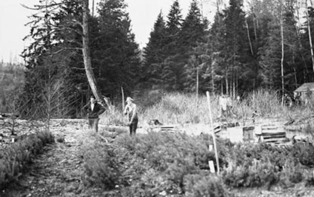 Dozens of pictures were taken for the 'Lumber World Review' magazine during a June, 1917 timber cruise along coastal BC by Clark and Lyford Ltd., the first forest engineering firm in British Columbia.