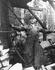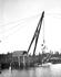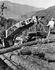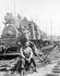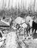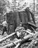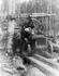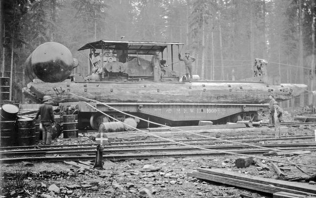 A cold decker donkey engine with a brand new sled. It has just been loaded onto a bull car and is just about ready to be taken out into the woods, where it will pull itself through the felled and bucked trees to the spar tree for use. This was used at Merrill Ring Wilson Ltd. operations near their...