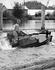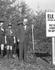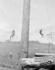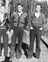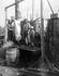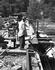 Martin Espaland (cook) with a small dog standing above on the springboard. Hans Bendickson second from right. Others believed to be (left to right) L. Dahl, ???, Nels Lovick, Moss Johnson, ???, Gus Gunderson, ???, ???.