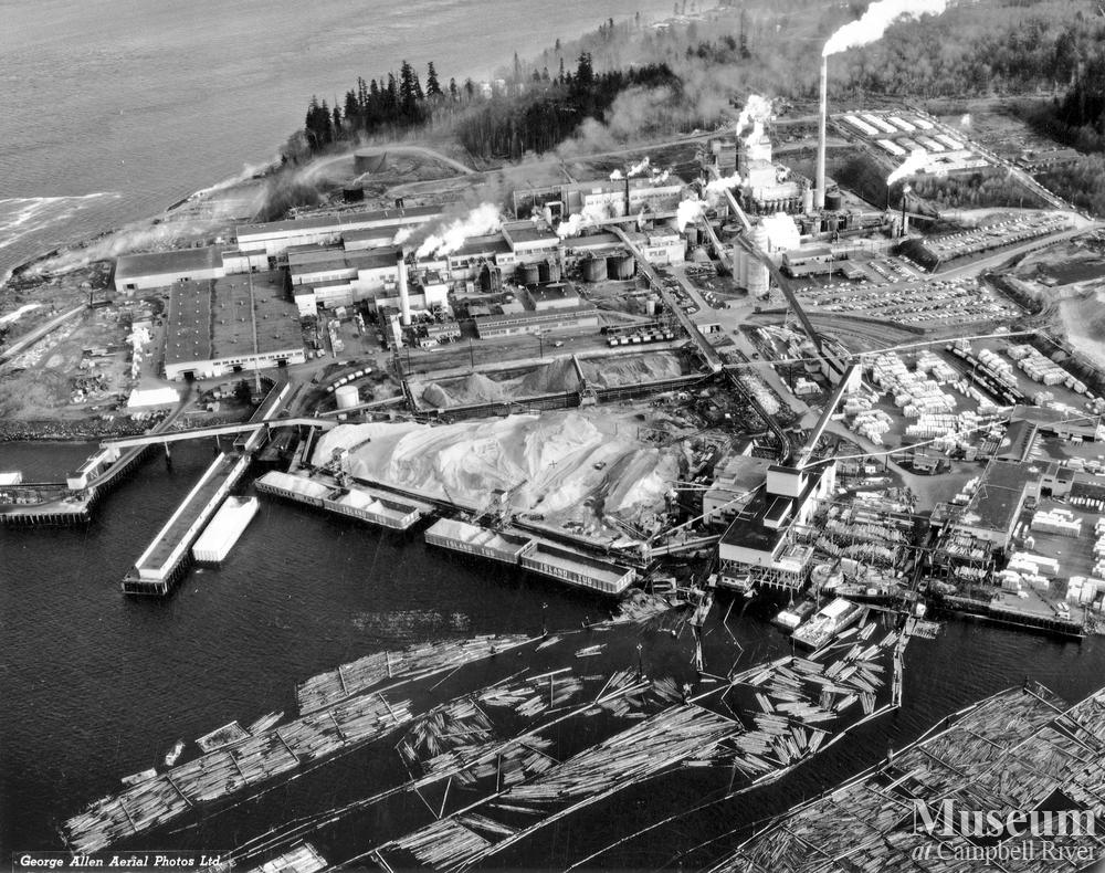 View of the Elk Falls Mill in 1966 the first year that the mill operated four paper machines.