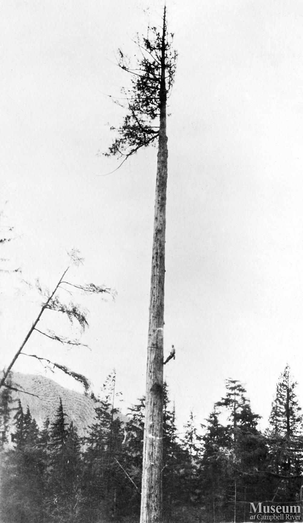 Bendickson Logging high rigger trims a spar