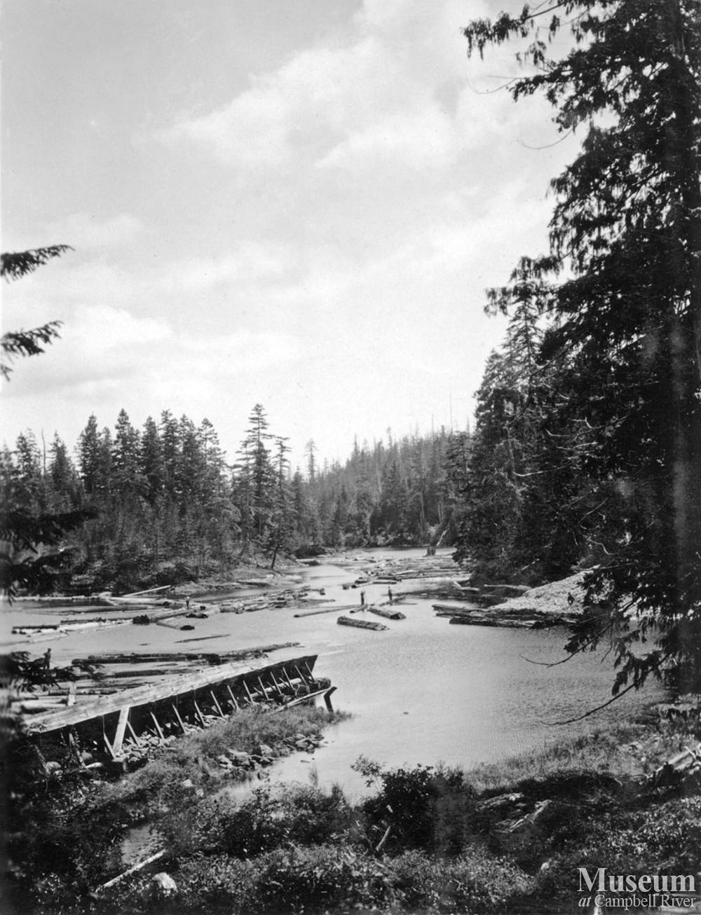 View of the log flume into Hemming Bay at Hasting Co., operations at Camp C.