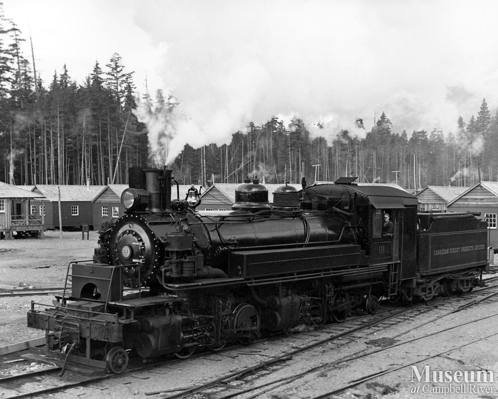 Canadian Forest Products Ltd. steam engine 111 at Woss.