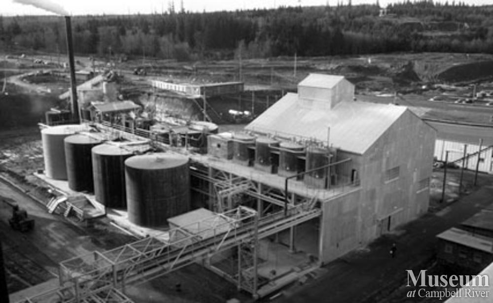 View of the Lime Plant (Recaust) at the Elk Falls Mill. This is part of the liquor recovery process.