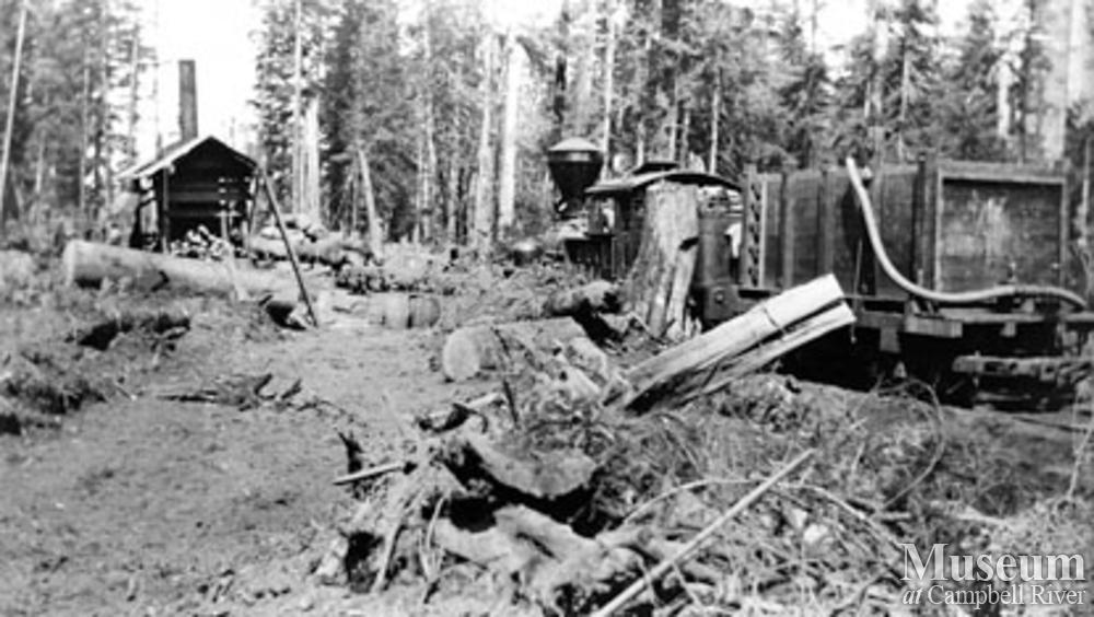 Locomotive and steam donkey.