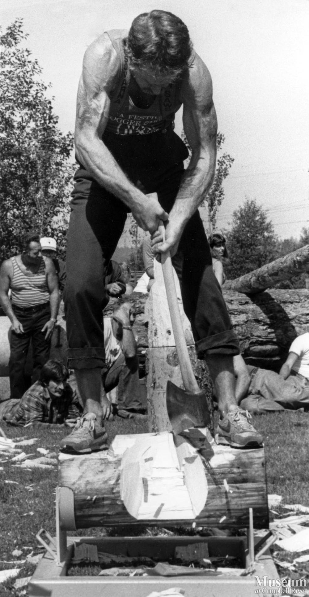 Elimination round of the Underhand Chop (the man pictured here won the round).