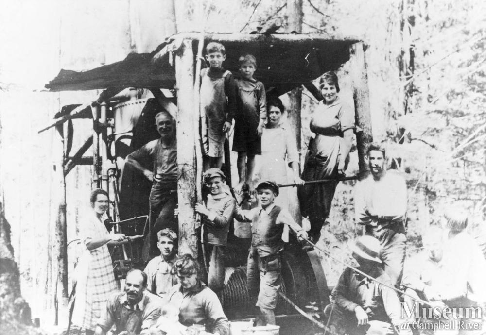 Group of people on steam donkey on Read Island