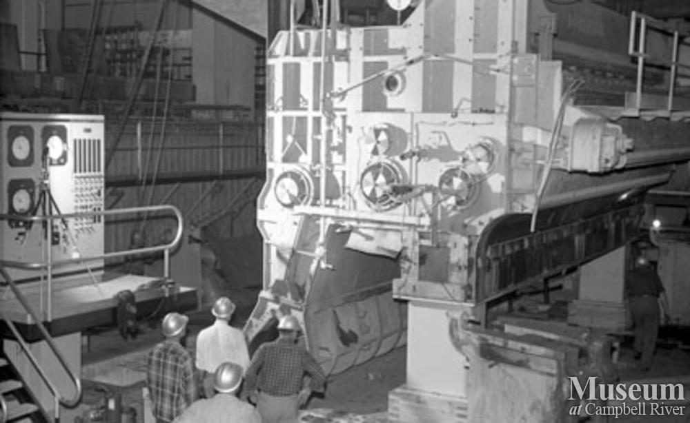 Installing the head box at No. 2 paper machine, Elk Falls Mill