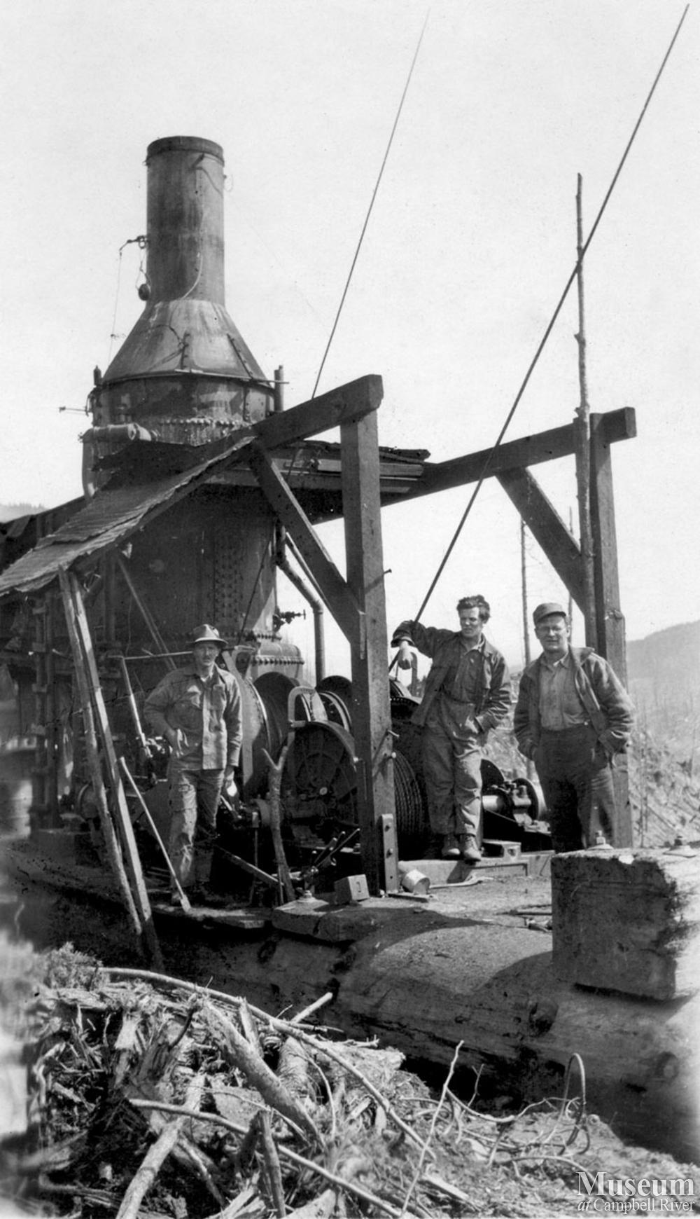 Crew and steam donkey at Lamb's Lumber Co. operations near Menzie's Bay.