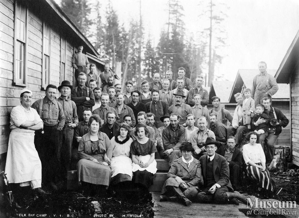Logging crew and families at Elk Bay