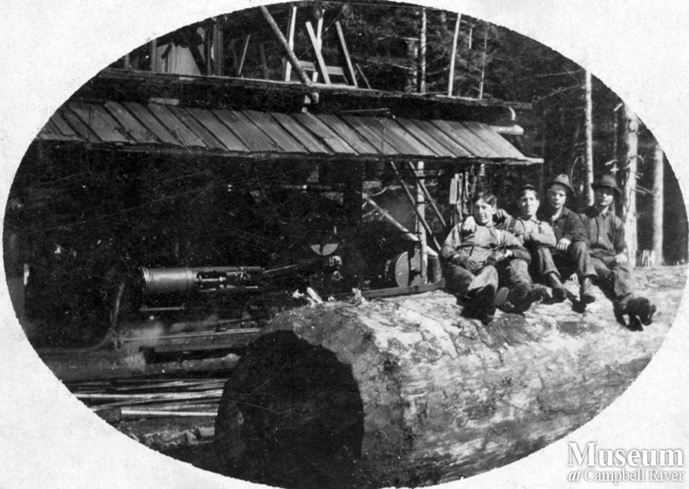 Logging crew with a steam donkey on Thurlow Island