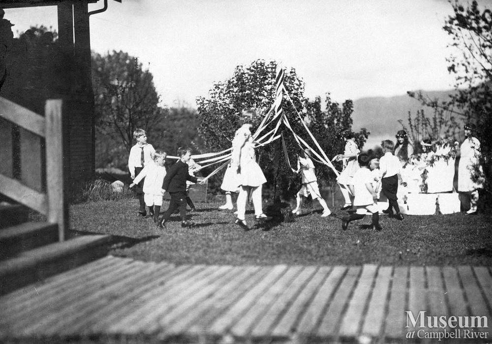 May Day event held by Hasting Co. employees a the Rock Bay.The Maypole dance (done on the lawn of the Rock Bay Hospital).