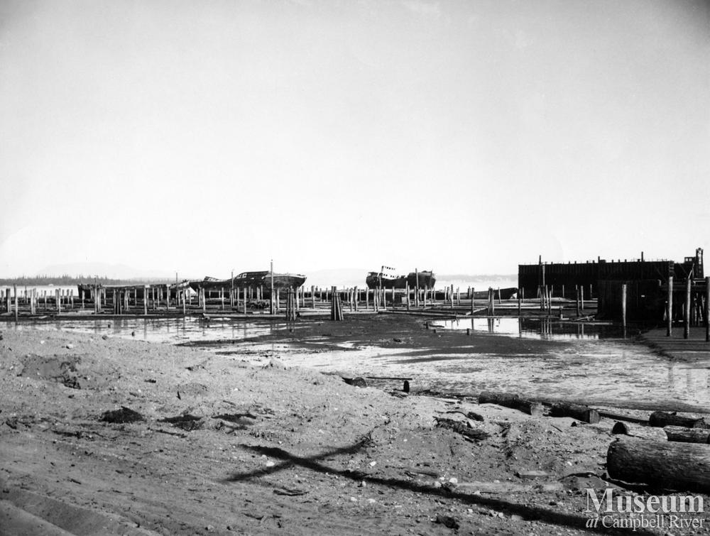 Old boat wrecks (some seen here) were used to build the breakwater at Oyster Bay when the area was used as a booming ground for the Iron River Logging operations.