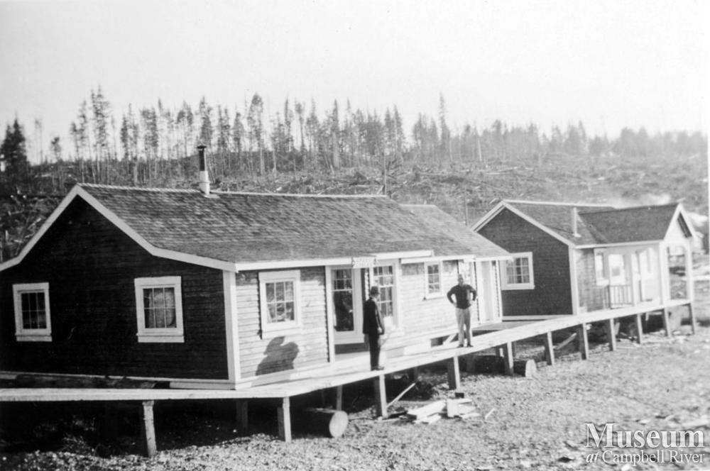 View of the logging camp buildings at Pioneer Timber Co. at their operations at Port McNeill.
