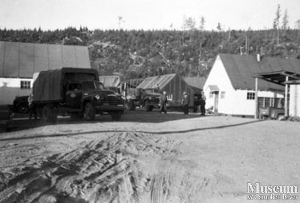 A reforestation camp in the Salmon River area (across high level bridge). White building on the right was the office.