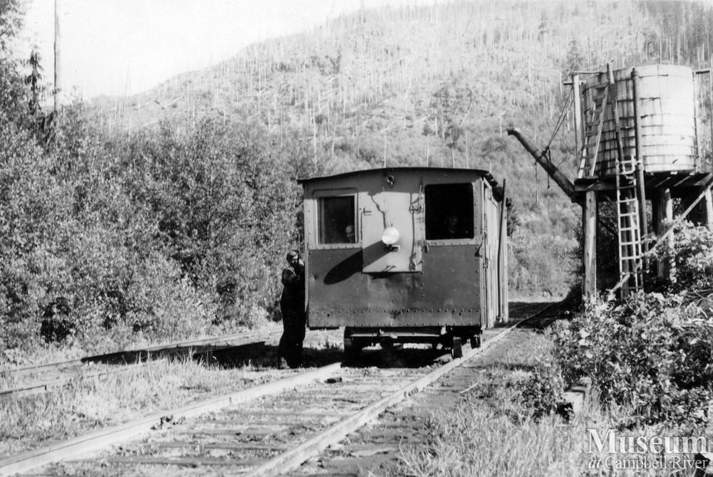 A speeder at the Bear Lake water tank, near Rock Bay.
