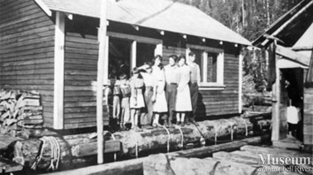 G.H. 'Doc' Gildersleeve operated a small logging camp at various locations. According to Ken Drushka's book, Working in the Woods he established the first truck logging camps on the mid-coast. This photograph taken when the camp was located at King Island.