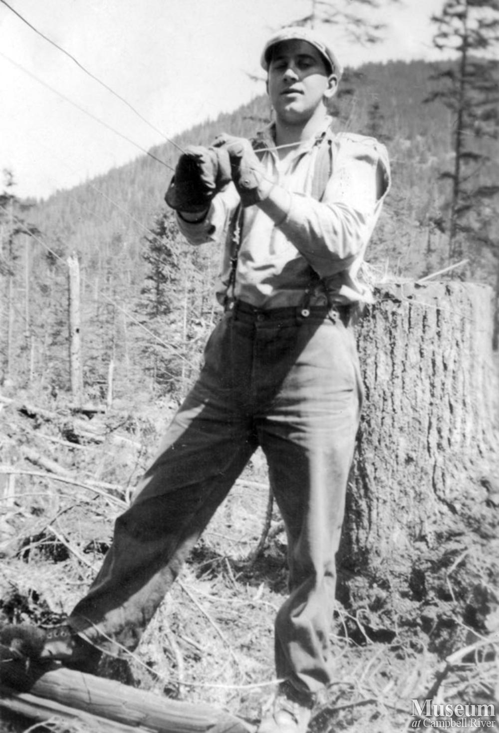 Whistle punk with a jerkwire near Port Neville