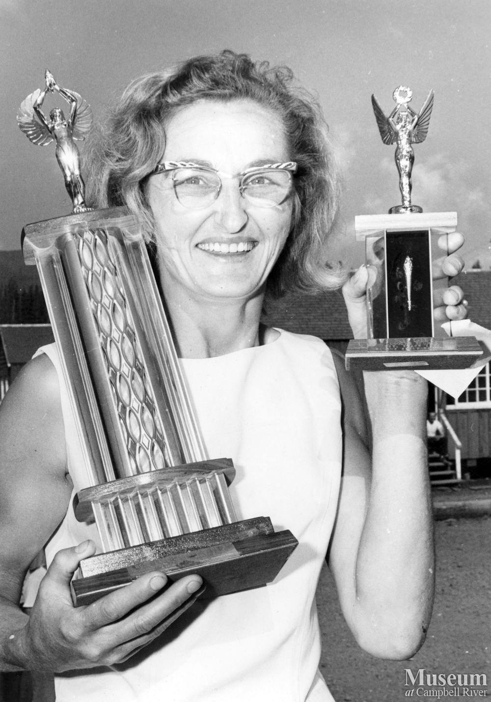 Ann Hardy, winner of the Women's Spike Driving competition.